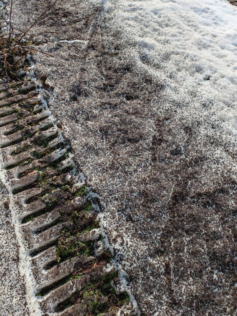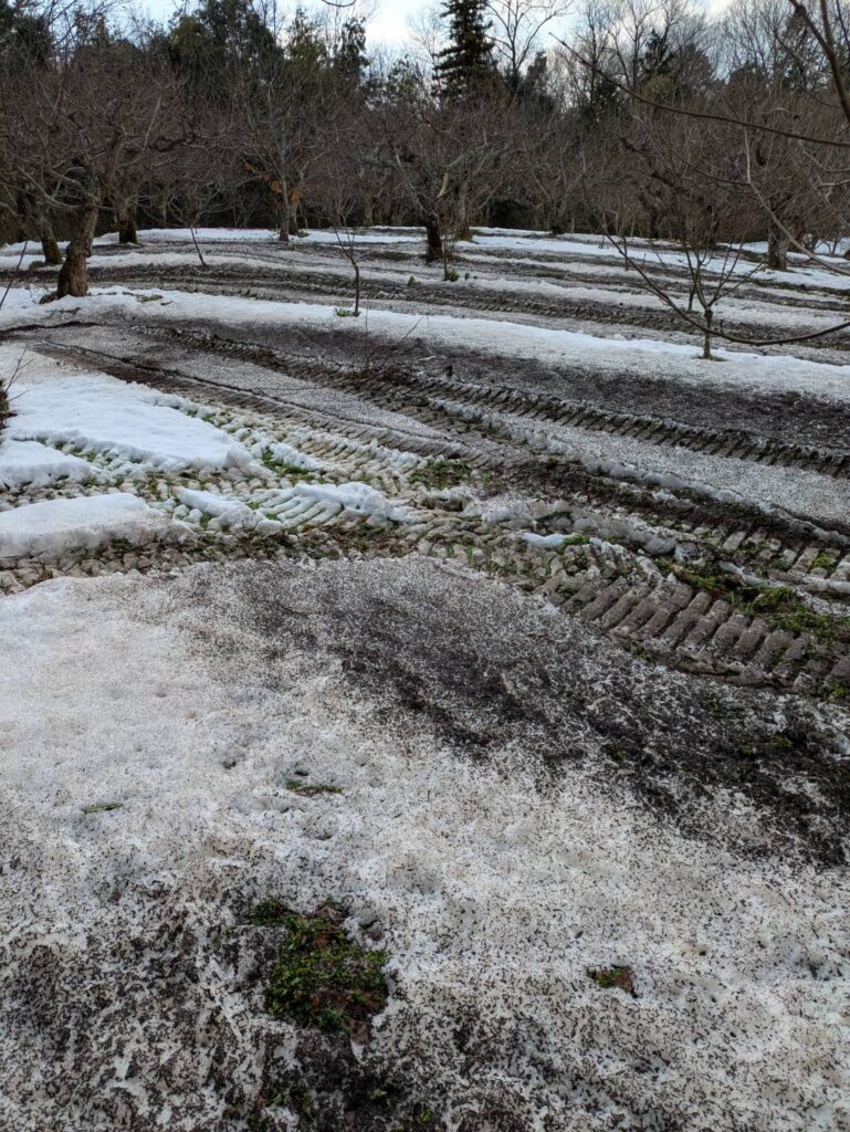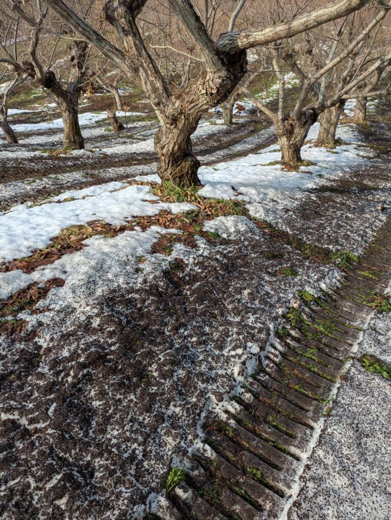 今年の元肥の散布は、雪の上での作業となりました。